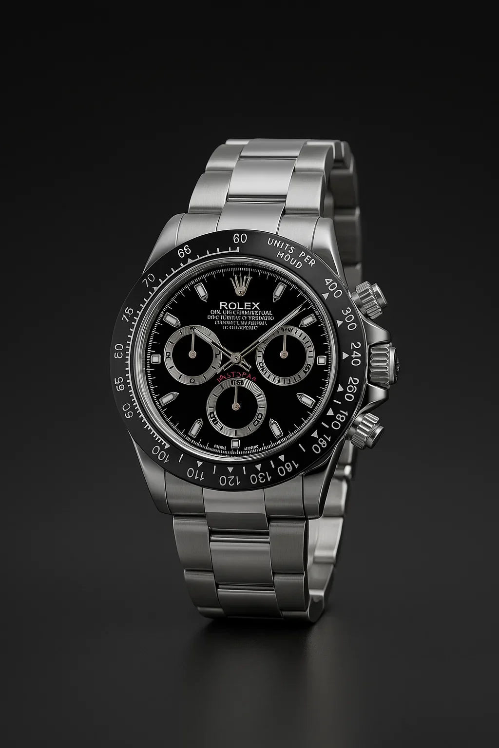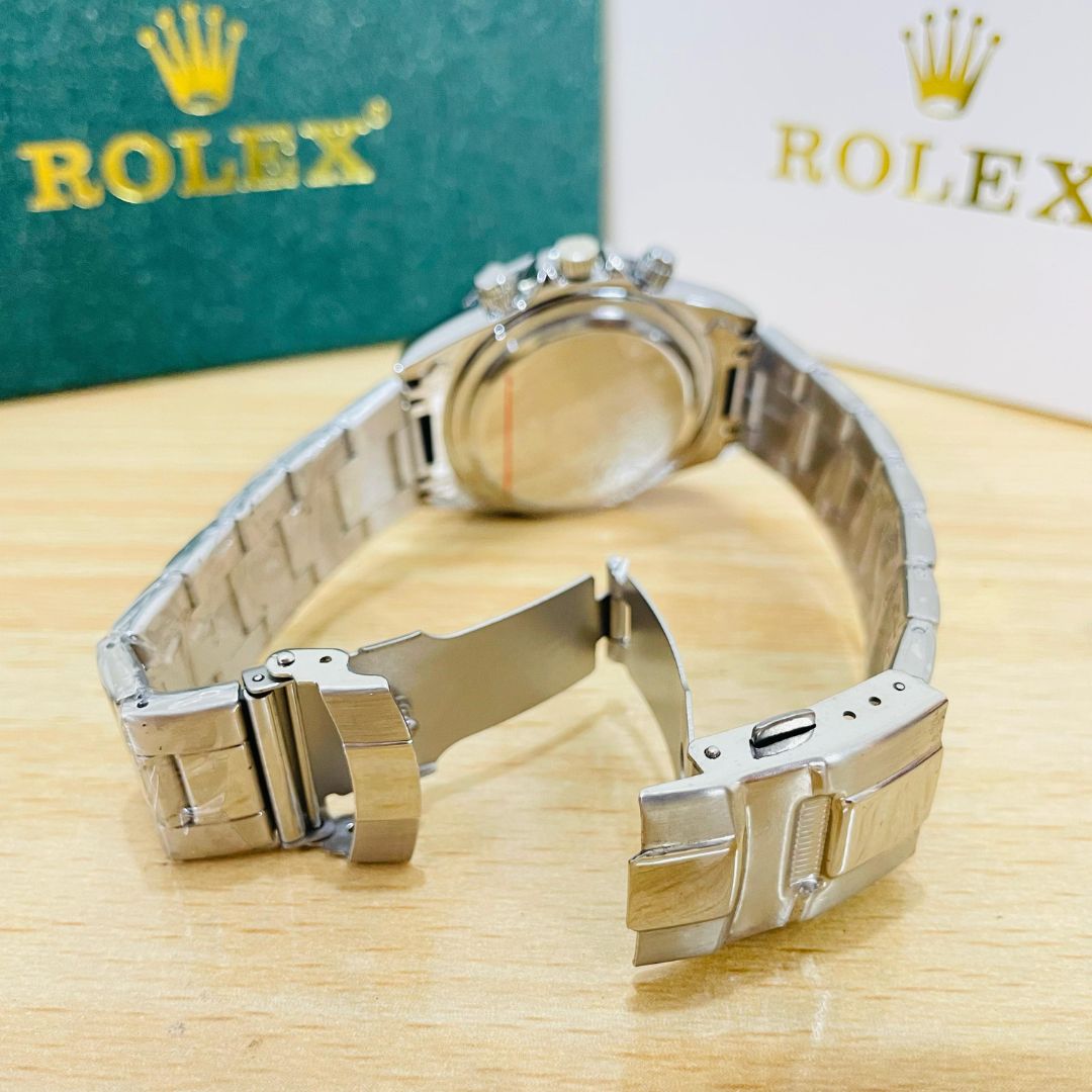 Bold and sophisticated, the RLX Daytona features a silver stainless steel body paired with a deep black dial — a perfect blend of elegance and performance. Designed for those who appreciate precision and standout style.