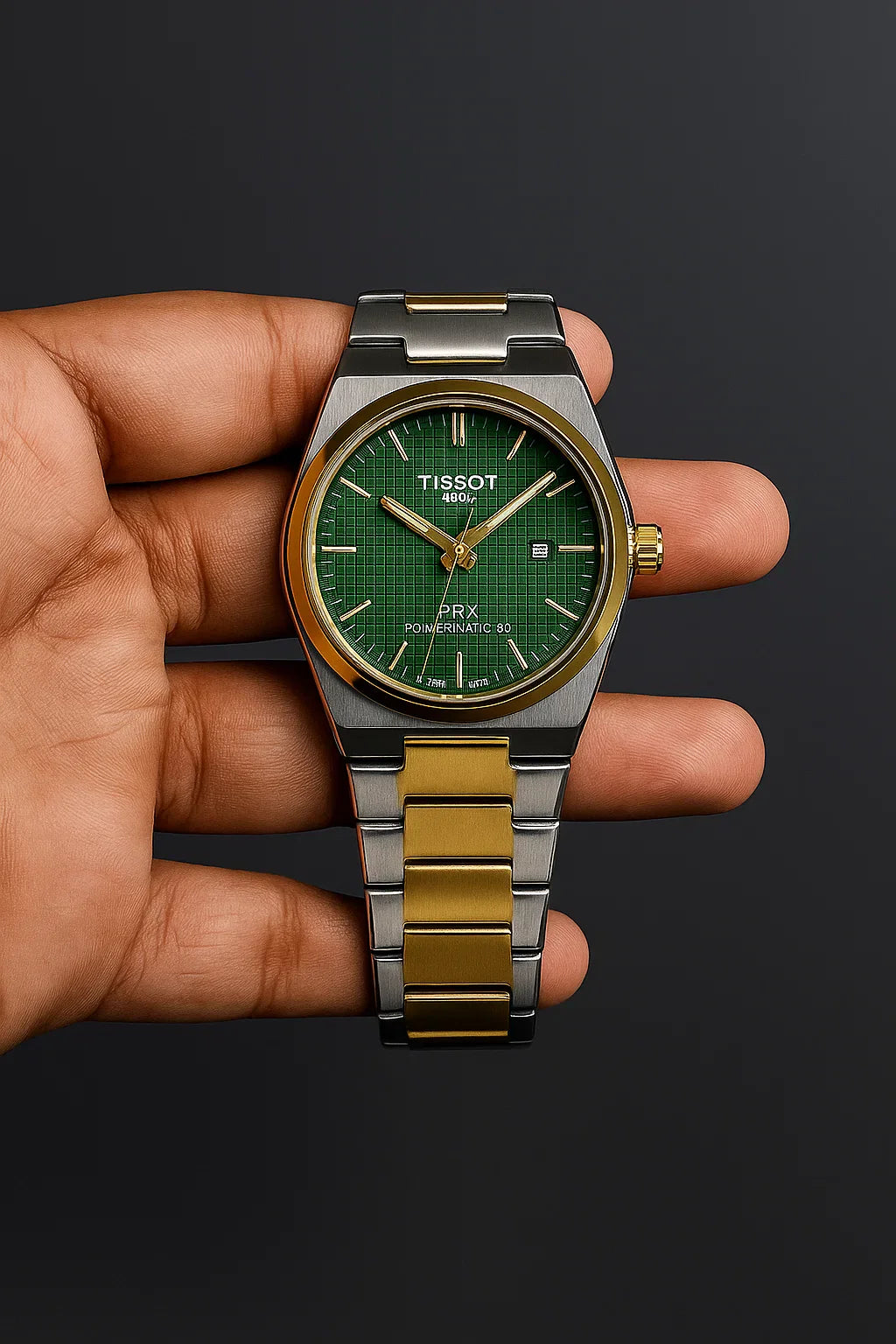 The Tissot PRX 38mm in stainless steel is a timeless fusion of modern minimalism and Swiss precision. Featuring a brushed steel case and integrated bracelet, this watch delivers sleek aesthetics and everyday versatility.