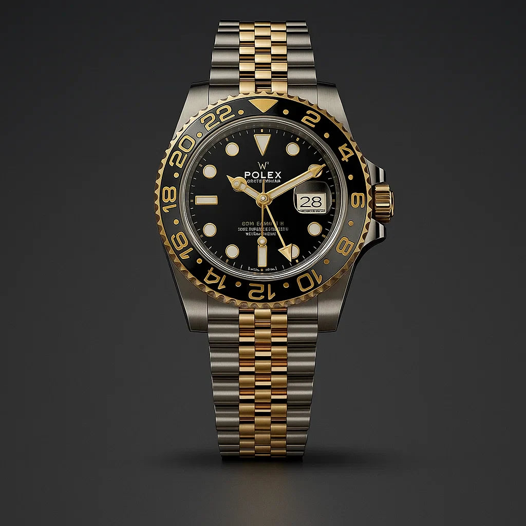 Make a bold impression with the RLX GMT Master Two Tone Gold — combining stainless steel and gold accents for a luxurious yet powerful look. This 40mm dual-time watch is a perfect blend of prestige and performance, designed for those who stand out.